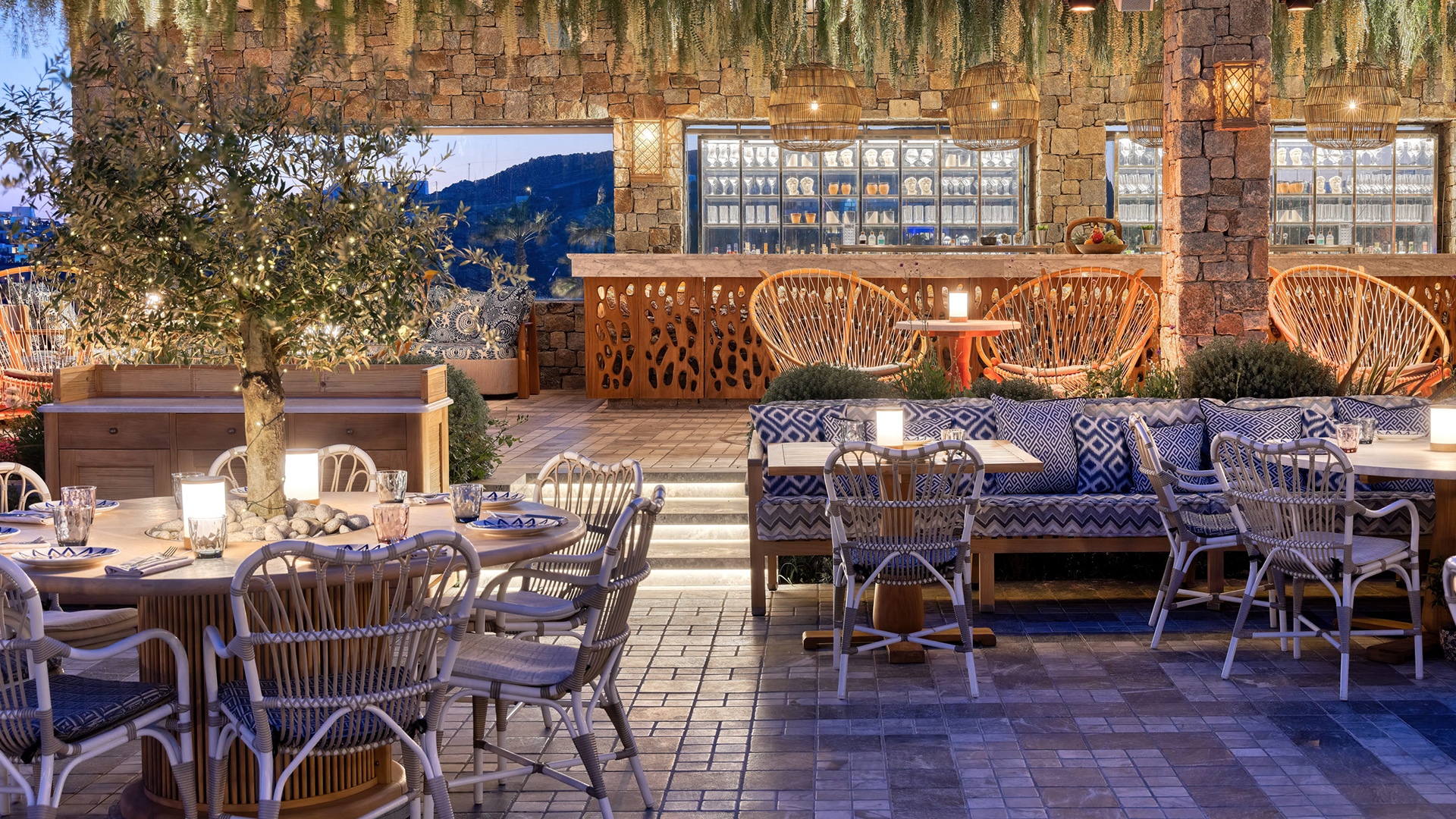 Elais Restaurant is named after the princess of Delos, granddaughter of Apollo, the God οf Light. A window to a Mediterranean garden overviewing the endless blue. Elais by Santa Marina Mykonos, celebrates a Greek cuisine homecoming with Mediterranean influences. Experience an authentic yet bespoke culinary journey through genuine flavors and a well curated list with wines all over the Greek and worldly terroir.